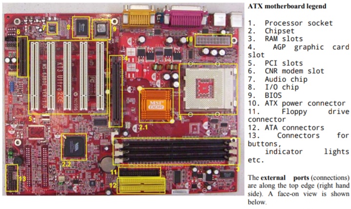 It was called a”mother” board in relation to these. A PC motherboard generally has a series ofslots, allowing to be plugged in directly to CPU. Other connectors on themotherboard allow communication through cables with various peripheral devices,