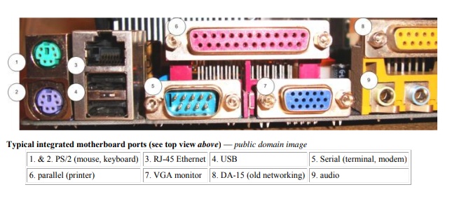 system unit. Externalports may be connected to the motherboard directly (integrated) or by circuit boards that are inserted
