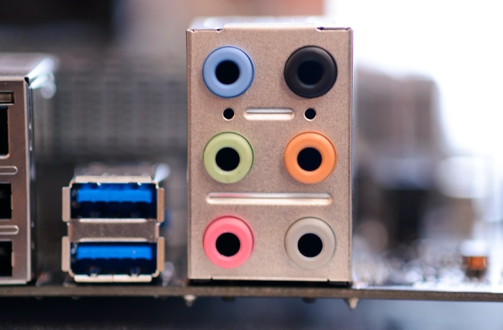 microphone, head sets, and possibly a game. The external ports are color codedby industry standard.